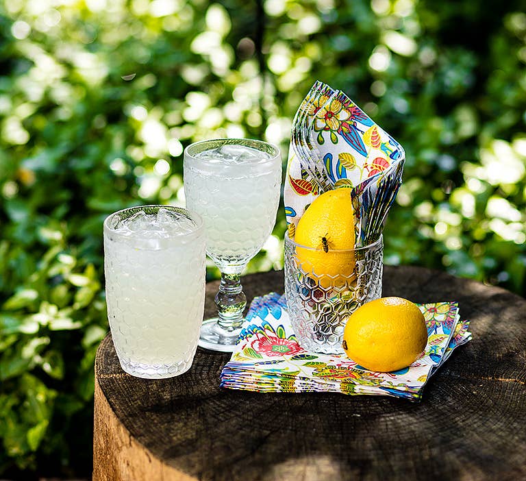 Our durable honeycomb textured low tumbler will add sparkle to your table. Perfect for an old fashion cocktail or water at the dinner table. Great everyday glass.