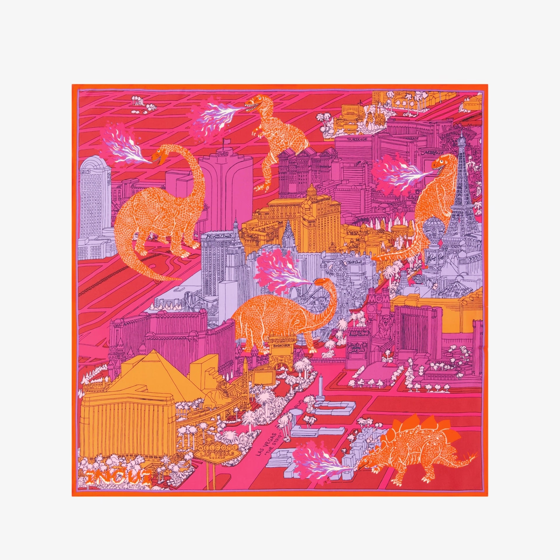 Inoui Editions Silk Square Scarf 65cm Vegas Dragons Fuschia and Orange