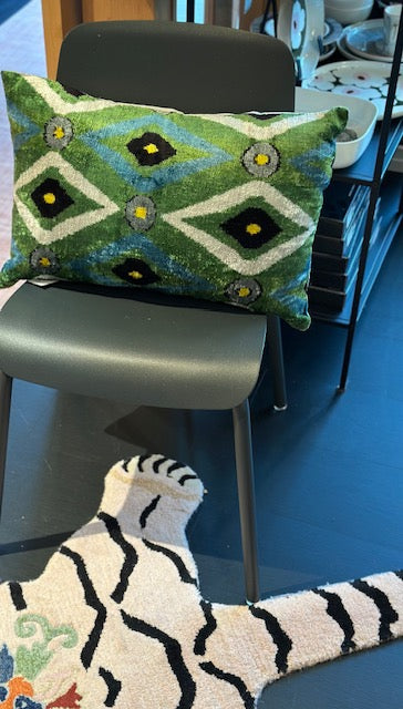 Silk Velvet Ikat Green and Blue Diamond Pillow Cover and Insert