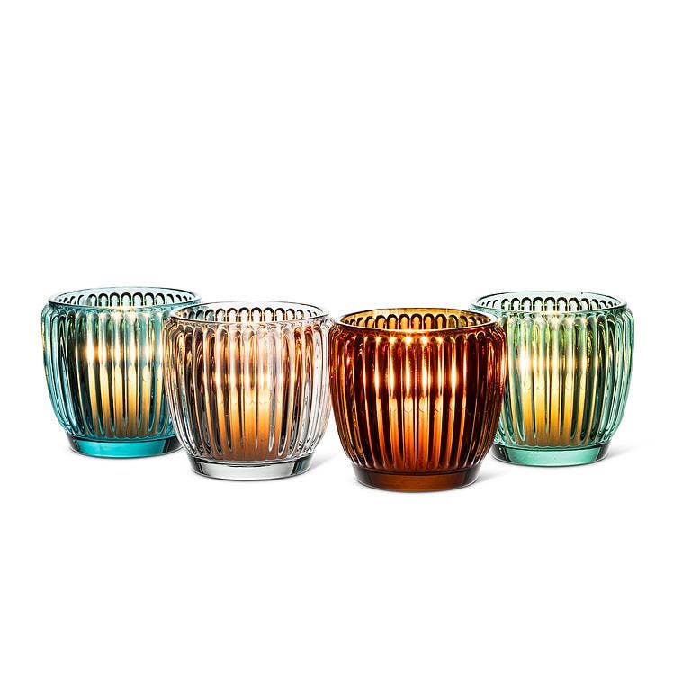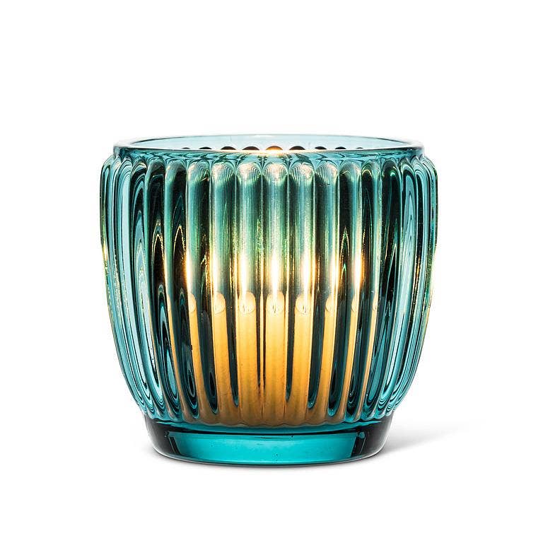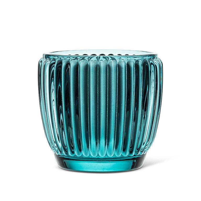 Denim Blue Votive features delicate ribbing that adds texture and visual interest. Standing at approximately 3 inches, it's perfect for showcasing tealights, creating a warm and inviting atmosphere. The ribbed glass design adds a touch of sophistication, making it a versatile and elegant decorative piece. Available in other colours.