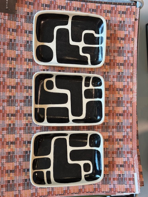 Hand made by Ware Ware Studio in Raleigh NC. Each piece is unique and size and pattern variations will occur. Trays are approximately 7"x 5".