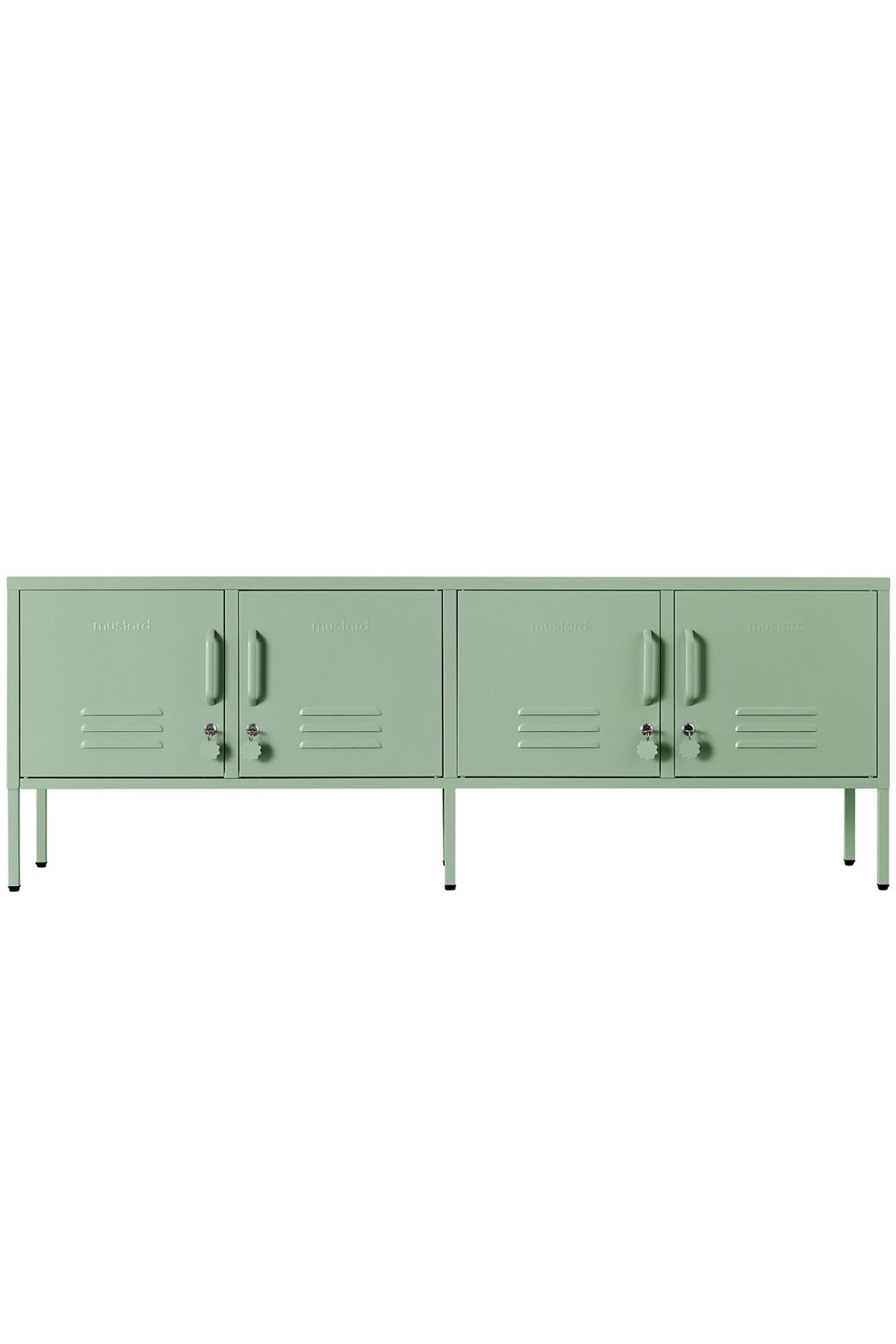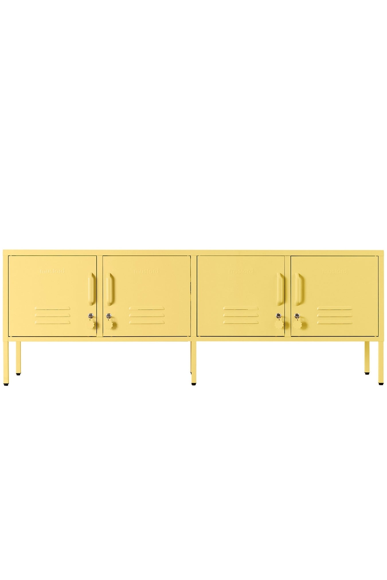Handles, locks, custom keyrings, Mustard logo and air vents. Plus, the whole locker is smooth, matte and magnetic!