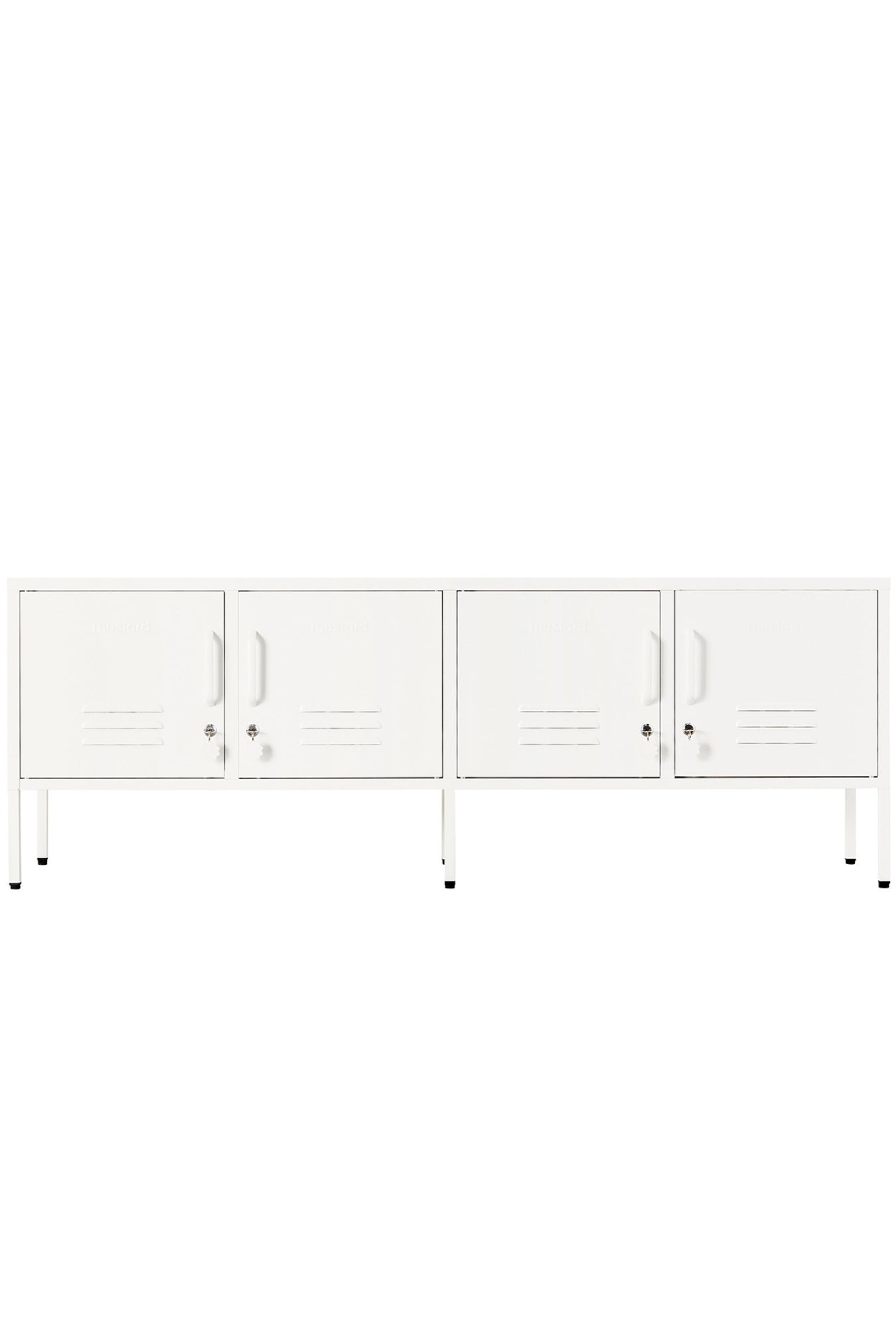 Meet our long + lean four door locker. She’s the ultimate multitasker and your one-stop for storage, whether you use her as a TV unit, entertainment hub, shoe organiser or at the foot of your bed. With two cable holes to keep things tidy and a lock on every door, she’s a console with confidence. It’s time to set the Standard!